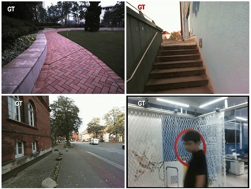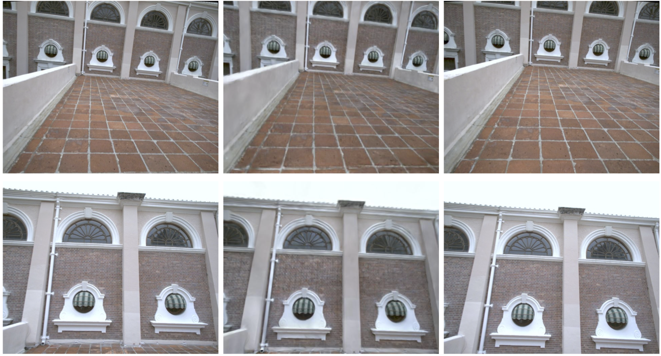 Application1 - Video Frame Interpolation: The images in the middle are the interpolated frames at the intermediate timestamps of the left and right images, benefiting from the spatiotemporal capabilities of the continuous-time trajectory and 3DGS.