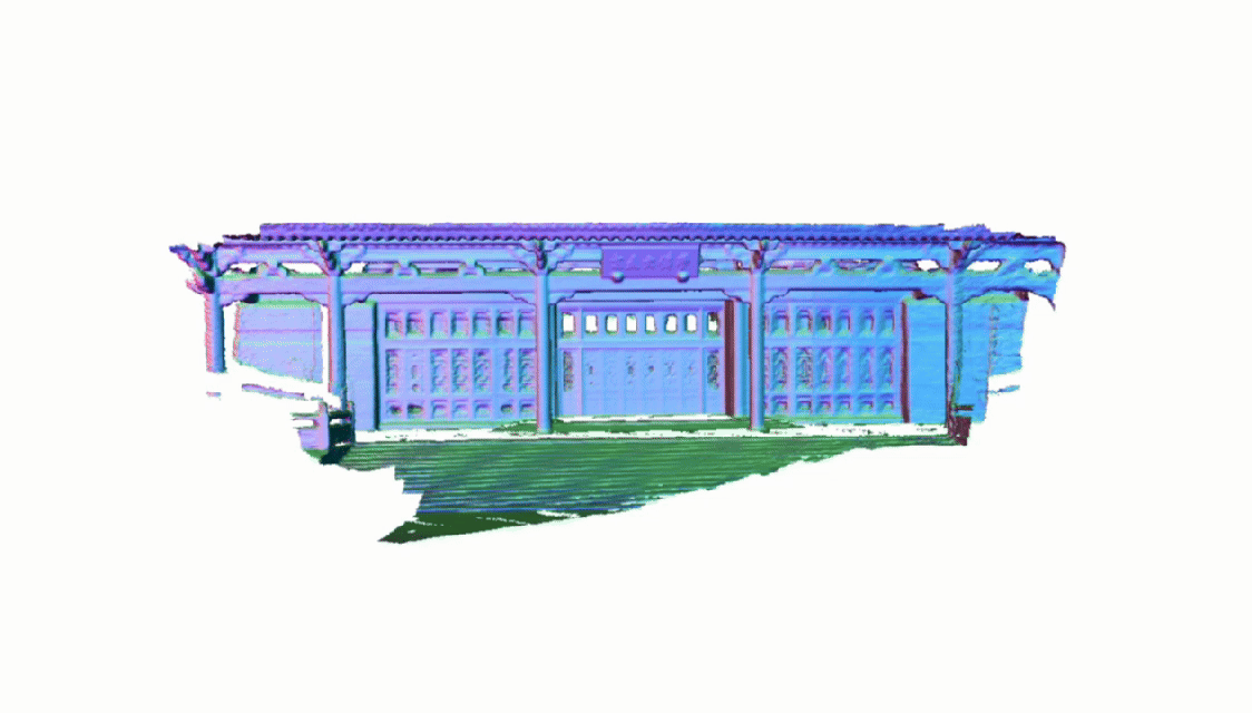 Application2 - Rapid 3D Mesh Extraction: Normal-colorized mesh generated from the Gaussian map reconstructed in real time.